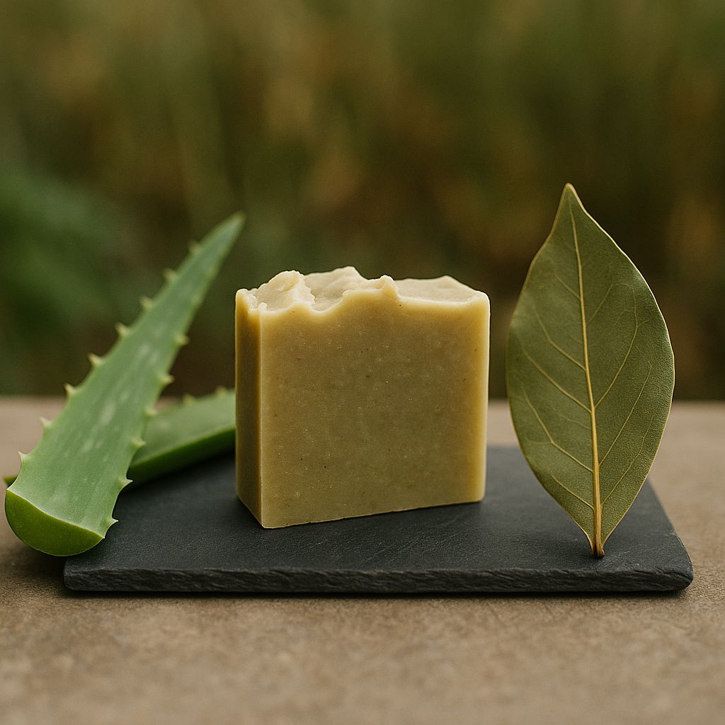 An aromatic infusion of bay leaf and tea tree oil brings natural cleansing and protective strength, while a full blend of healing herbs — arnica, plantain, shavegrass, calendula, and yarrow — calms inflammation, soothes irritation, and supports repair. Aloe vera adds a cooling, hydrating touch, restoring moisture and balance to sensitive skin. Grounded in a rich base of tallow, extra virgin olive oil, coconut oil, and castor oil, this bar creates a creamy, conditioning lather that both nourishes and protects.