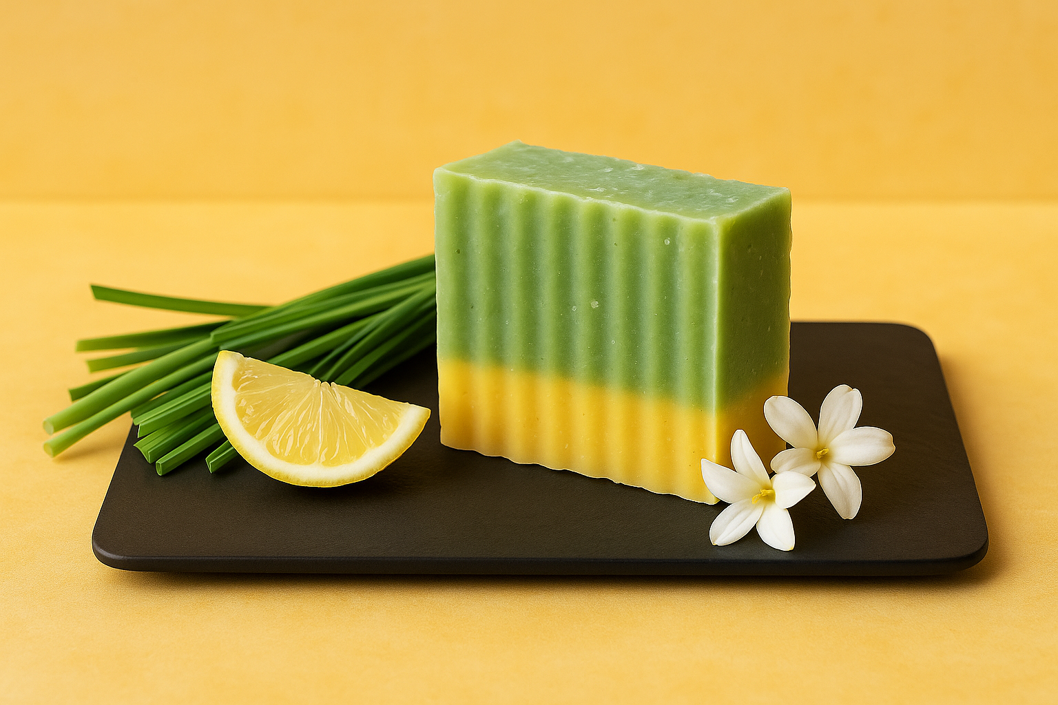 A bright, refreshing infusion of lemongrass pairs with the soft floral elegance of tuberose essential oil, creating a bar that uplifts the senses while deeply cleansing the skin. Blended with tallow, olive, coconut, and castor oils, it delivers a rich, conditioning lather. Corn starch adds silkiness, while a touch of salt and sugar helps harden the bar and boost lather. Together, this recipe balances cleansing with nourishment, leaving the skin soft, energized, and lightly perfumed with citrus and floral notes.