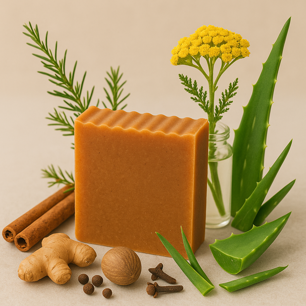 Best for: Combination or acne-prone skin, gentle moisture with a clarifying touch, seasonal self-care. With pumpkin + warming spices + aloe + tea tree + the five healing herbs, this bar is a true eczema heavyweight — both soothing and protective, making it strong enough for flare-ups yet gentle for daily use.