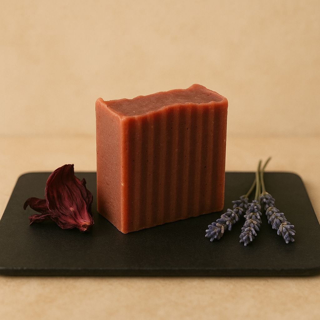 Ingredients: Hibiscus, Tallow, Coconut Oil, Castor Oil, Extra Virgin Olive Oil, Lye, Water, Lavender Petals