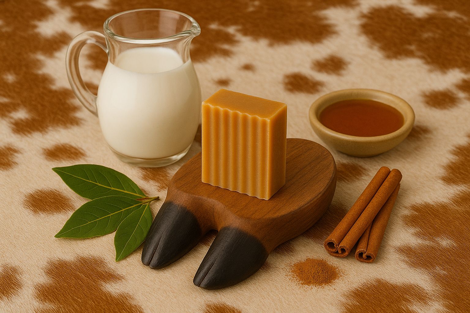 A bold infusion of bay leaf and cinnamon creates a warming, purifying bar that stimulates circulation while supporting skin clarity. Tea tree oil adds antimicrobial strength, helping calm irritation and restore balance. Enriched with cow milk and honey, the soap deeply moisturizes and soothes, softening dry or inflamed areas. Built on a rich base of tallow, olive, coconut, and castor oils, it produces a creamy lather that cleanses while nourishing the skin.